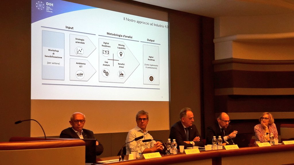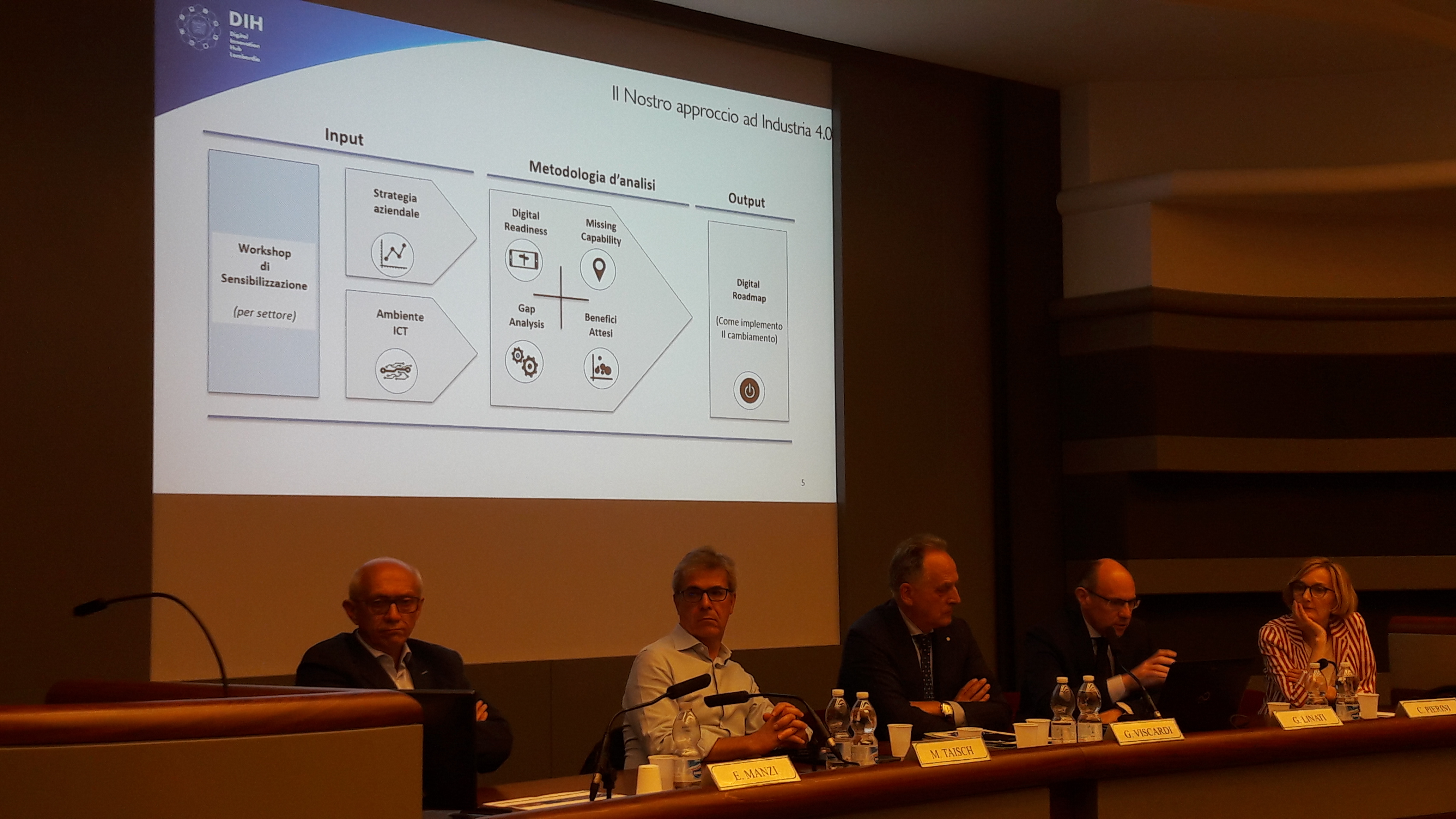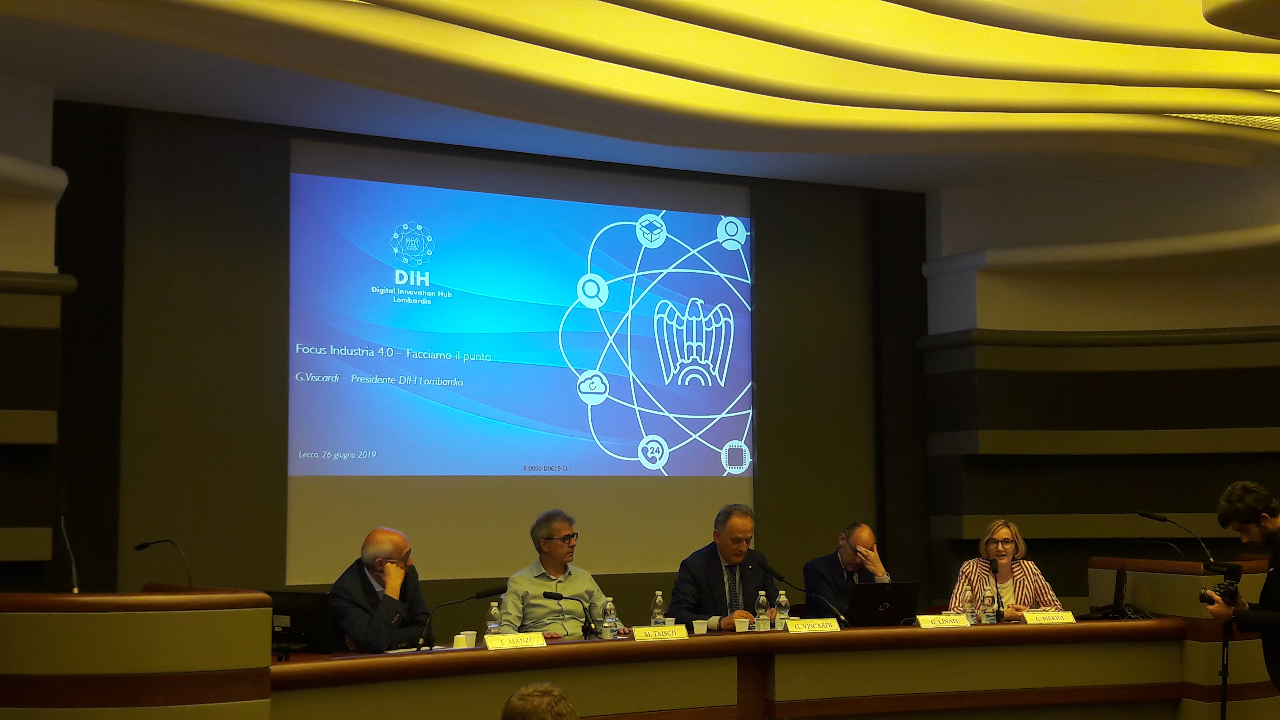 Marco Taisch - Politecnico di Milano, Presidente Competence Center MADE, Gianluigi Viscardi - Presidente DIH Lombardia e Presidente Cosberg Spa, Giuseppe Linati - Direttore DIH Lombardia e Ennio Manzi - Italfinance CCA sono i protagonisti dell’incontro organizzato oggi, 26 giugno, da Confindustria Lecco e Sondrio e dal Digital Innovation Hub Lombardia presso la sede lecchese dell’Associazione territoriale.