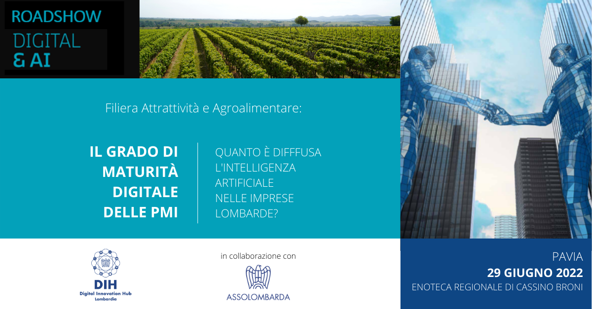 DIH Lombardia, in collaborazione con Assolombarda, partecipa il 29 giugno ore 10:00 all'evento "Innovazione digitale per la competitività del comparto vitivinicolo", primo appuntamento del ciclo di incontri "Filiera Attrattività e Agroalimentare: Valorizzazione del territorio e del settore vitivinicolo dell’Oltrepò Pavese"