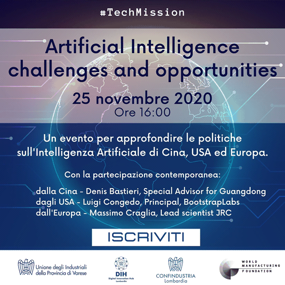 L’Unione degli Industriali della Provincia di Varese, con la collaborazione di Confindustria Lombardia e del Digital Innovation Hub Lombardia, organizza una serie di eventi digitali incentrati sul tema dell’Intelligenza Artificiale.